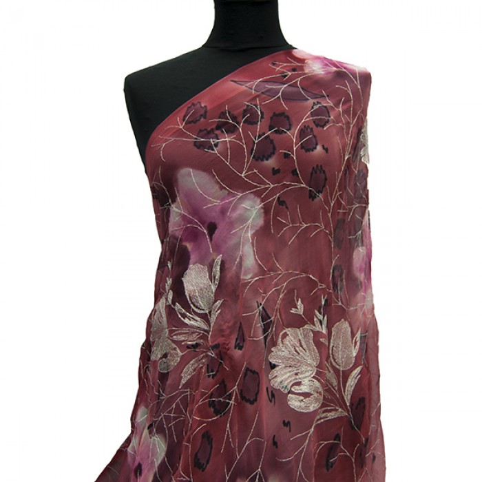 SF-1028A - Μουσελίνα Κεντημένη με Μεταλλική Κλωστή